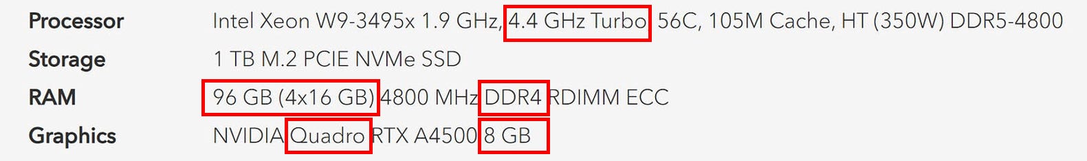 Intel Xeon w9-3495X has a 4.8GHz Turbo, not 4.4 GHz.
