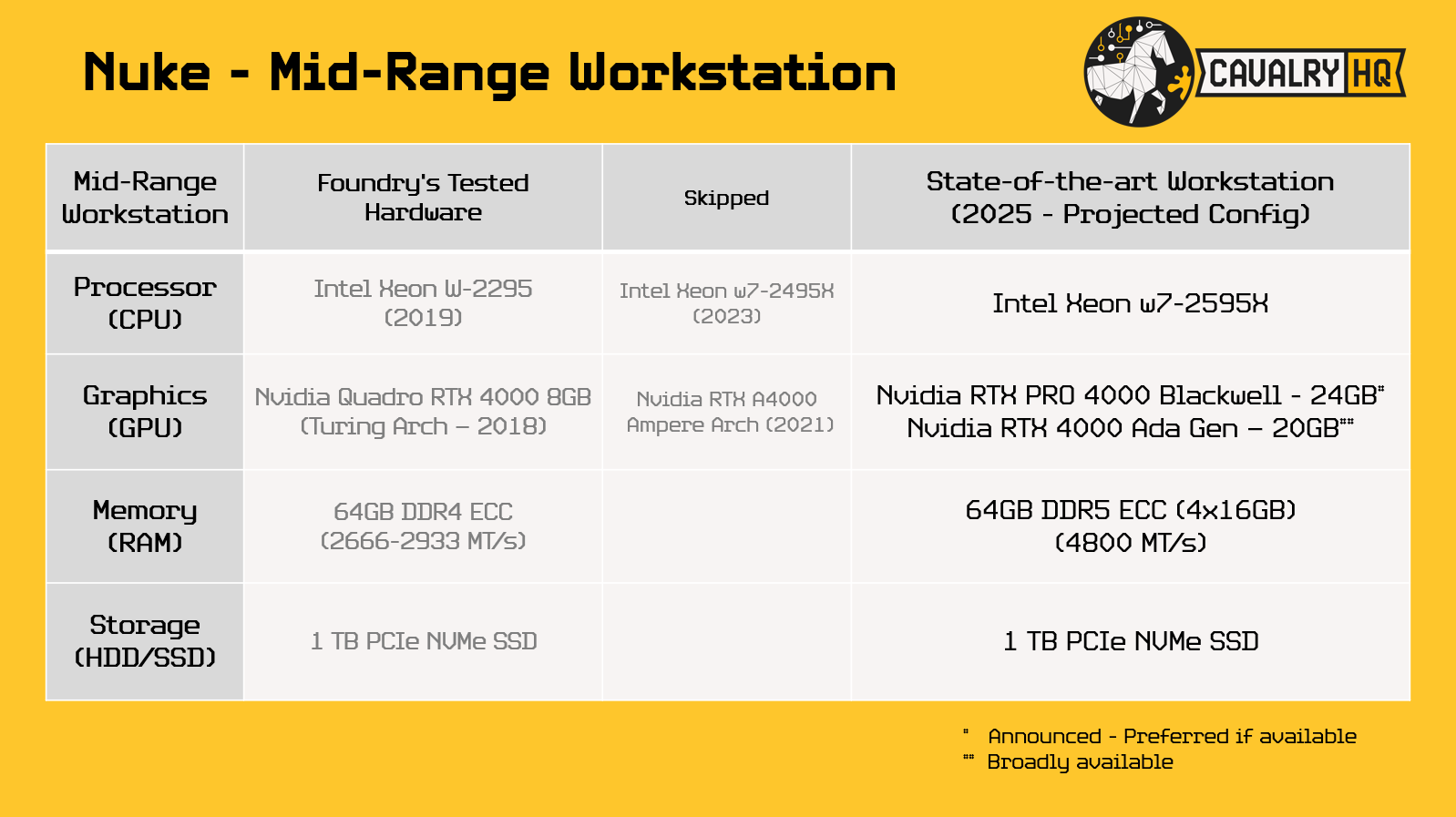 Based on the systems shown, this is CavalryHQ’s projection into state-of-the-art workstations to the writing of this article in June 2025: