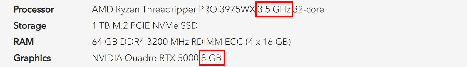 Nvidia Quadro RTX 5000 has 16GB of VRAM, not 8GB